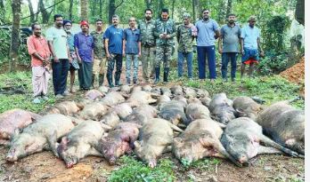 മലപ്പുറം : ജില്ലയില് ഒരു ദിവസം നടത്തിയ ഏറ്റവും വലിയ കാട്ടുപന്നി വേട്ടയാണ് കഴിഞ്ഞ ദിവസം കാളികാവില് നടന്നത്.കൃഷിയിടത്തില് ഇറങ്ങിയ 36 കാട്ടുപന്നികളെ ആണ് വെടിവെച്ച് കൊന്നത്....